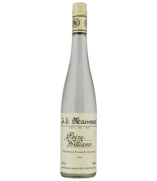Massenez Poire Williams Eau-De-Vie is een verfijnde en elegante drank die de essentie van rijpe Williams peren vangt. Deze